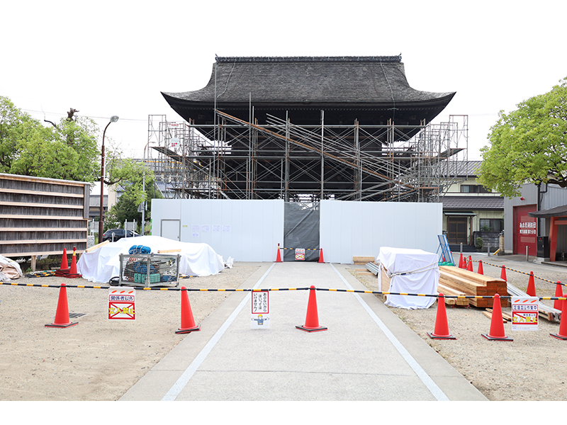 甚目寺観音(正式名称は鳳凰山甚目寺)は、荒子観音寺、龍泉寺、笠寺観音とともに「尾張四観音」の一寺院で、徳川家康が名古屋城の鎮護のために定めたと伝わっております。甚目寺観音南大門は、約八百年の歴史を有し、国の重要文化財に指定された県内最古の楼門です。長年の風雨で損傷がひどいため、令和8年度まで「甚目寺南大門令和の大修復」が現在行われています。